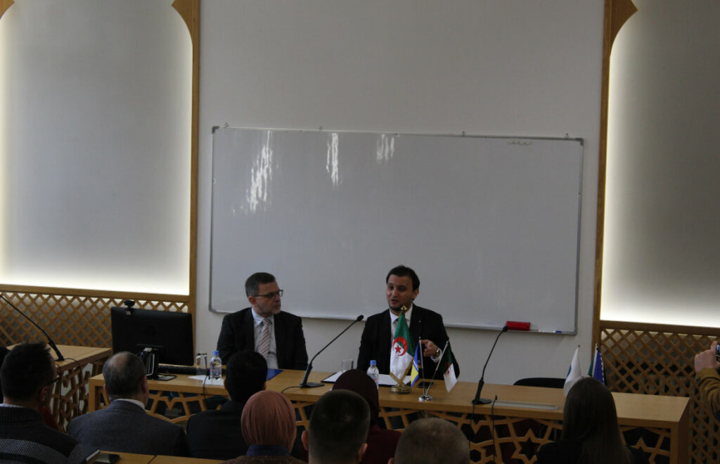Na Univerzitetu u Sarajevu – Fakultetu islamskih nauka, u srijedu, 7. januara 2026. godine, u amfiteatru Fakulteta, održano je predavanje o temi „Emir Abdul Kadir Džeza'iri i međunarodno humanitarno pravo: doprinos kodifikaciji i praksi“, koje je održao Njegova Ekselencija Mohammed Meraimi, ambasador Narodne Demokratske Republike Alžir u Bosni i Hercegovini. Predavanje je organizirano u okviru redovnih mjesečnih tribina, a moderator predavanja bio je prof. dr. Senad Ćeman. Predavanje je održano na arapskom jeziku.