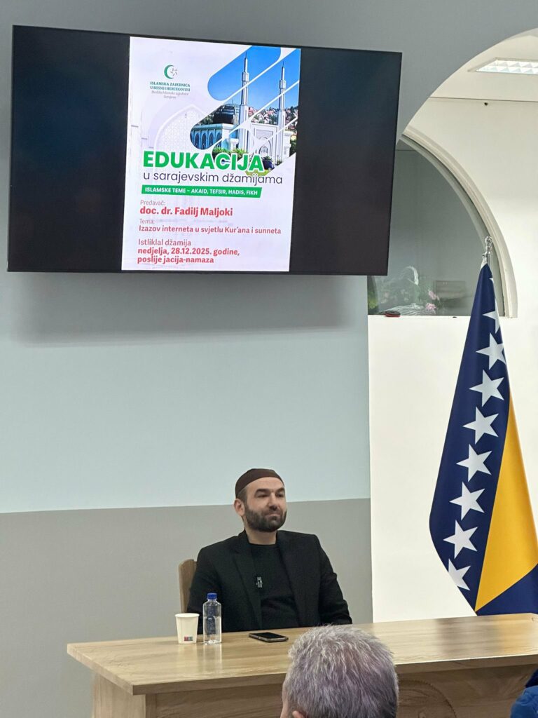 U okviru aktivnosti „Edukacija u sarajevskim džamijama“, koje realizira Medžlis Islamske zajednice Sarajevo, u nedjelju, 28. decembra 2025. godine, u Istiklal džamiji održano je predavanje o temi: Izazovi interneta u svjetlu Kur'ana i sunneta.