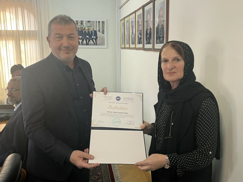 Priznanja su dodijljena prof. dr. Amiri Trnka-Uzunović, rukovodiocu Katedre za filologiju Kur'ana, prof. dr. Amrudinu Hajriću, prof. dr. Zehri Alispahić, prodekanesi za naučno-istraživački rad, višem asistentu mr. Vedadu Huriću, te prof. dr. Kenanu Musiću, prodekanu za finansije i prof. dr. Aidu Smajiću, prodekanu za međunarodnu saradnju.