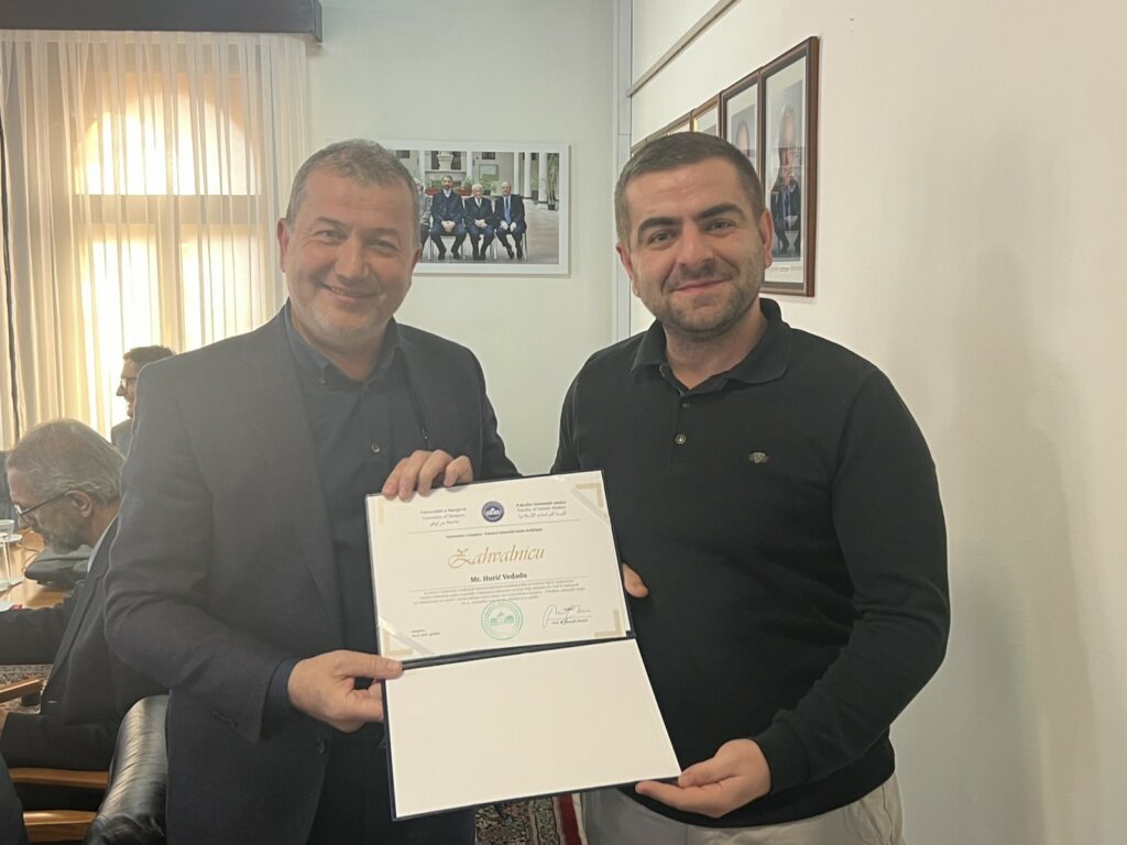Na trećoj sjednici Nastavno-naučnog vijeća Univerziteta u Sarajevu – Fakulteta islamskih nauka, održanoj 03. decembra 2025. godine, upriličena je dodjela priznanja nastavnom osoblju koje je dalo poseban doprinos realizaciji intenzivnog kursa arapskog jezika, organiziranog u saradnji s Islamskim kulturnim centrom „Šejh Abdullah bin Zajed Al Mahmoud“ iz Katara. Priznanja je uručio dekan, prof. dr. Mustafa Hasani, naglasivši važnost predanog rada i jačanja međunarodnih partnerstava, s ciljem usavršavanja znanja i kompetencija studenata.