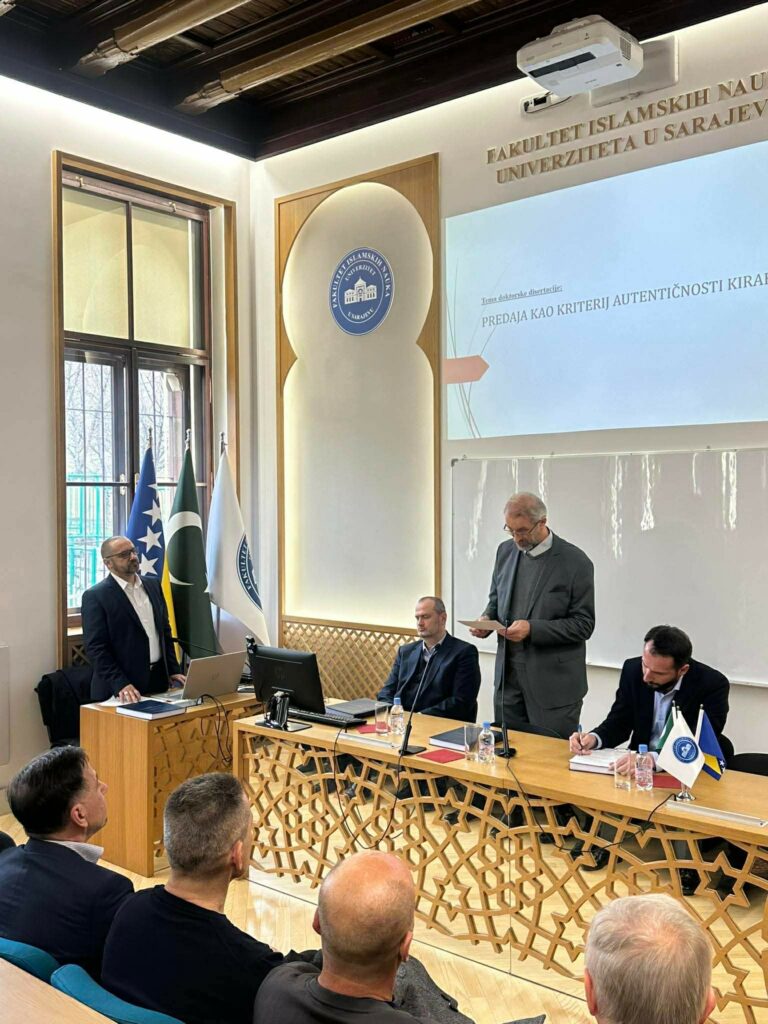 Na Univerzitetu u Sarajevu – Fakultetu islamskih nauka 16. februara 2026. god., odnosno 28. šabana 1447. h. god. mr. kurra hafiz Alija Rahman odbranio je doktorsku disertaciju pod naslovom Predaja kao kriterij autentičnosti kiraeta.
