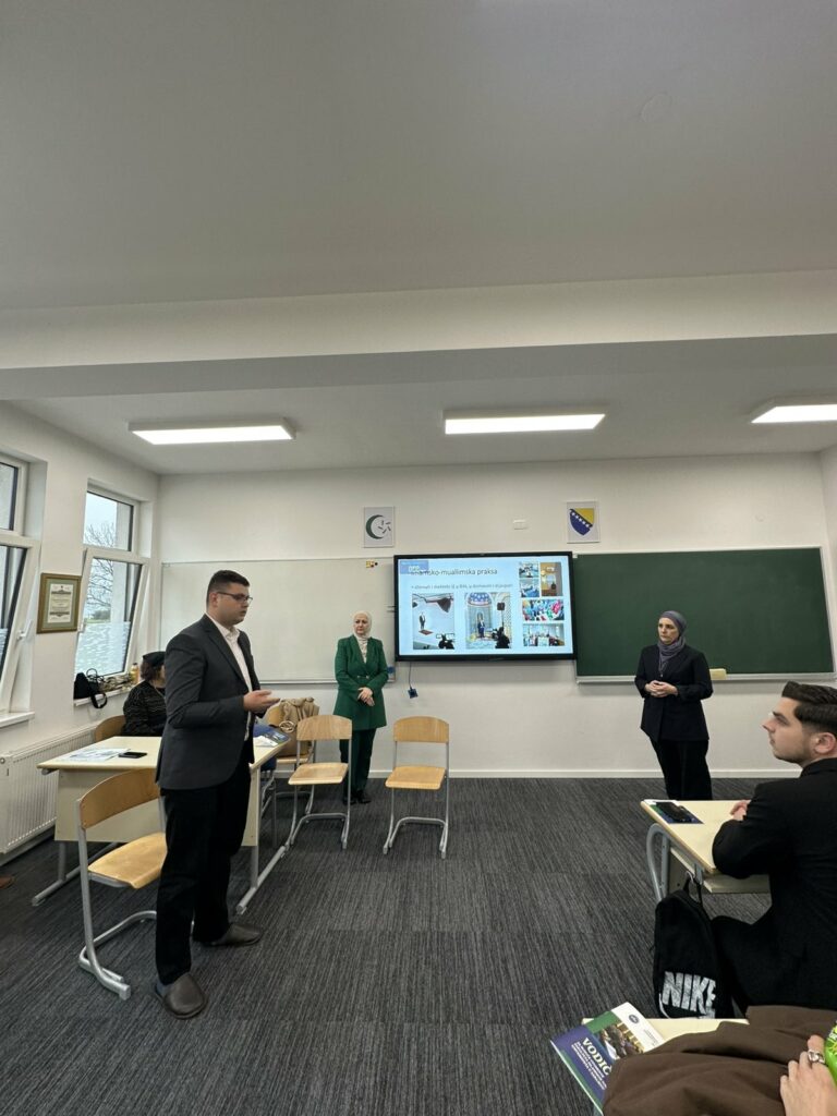 Delegaciju Fakulteta činili su prof. dr. Dina Sijamhodžić-Nadarević, stručna saradnica mr. Emina Kadić, studenti master studija Emir Divović i Dželila Kukan, te lektorice za engleski i njemački jezik, Yarah Elshaer i Julia Pahl. Tokom prezentacije učenicima su predstavljeni studijski smjerovi, način izvođenja nastave, mogućnosti praktičnog angažmana, kao i brojni resursi i aktivnosti koje Fakultet islamskih nauka nudi svojim studentima.