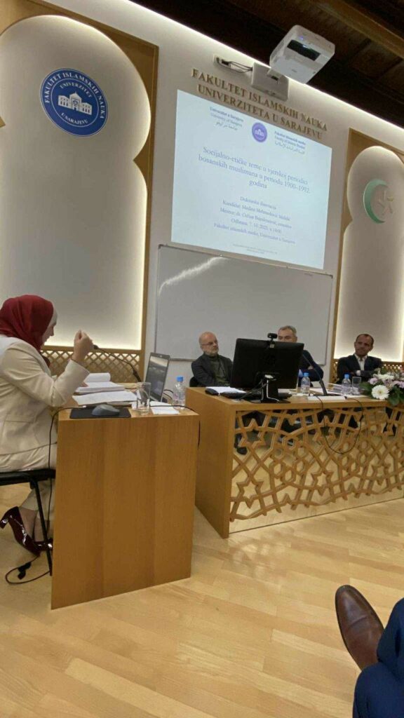 Na Fakultetu islamskih nauka Univerziteta u Sarajevu 7. oktobra 2025. godine mr. Medina Mehmedović-Mulalić uspješno je odbranila doktorsku disertaciju pod naslovom “Socijalno-etičke teme u vjerskoj periodici bosanskih muslimana u periodu 1900–1992. godine” i stekla zvanje doktora islamskih nauka u oblasti islamske filozofije.