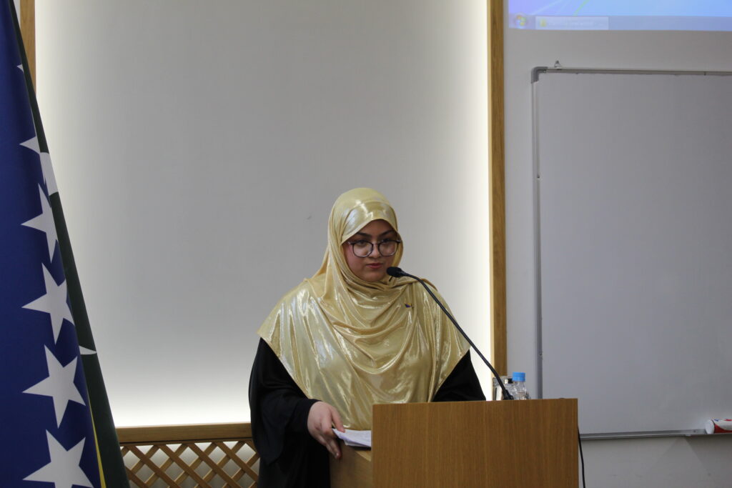 Obraćajući se prisutnima, dekan Hasani je istakao da je “arapski jezik ključ islamskih nauka i osnovno sredstvo za razumijevanje čistih izvora islama, Allahove Knjige i sunneta te hadisa Allahovog poslanika, sallallahu alejhi ve sellem. On je neophodan za svakoga ko želi učiti islamske nauke poput akaida, fikha, tefsira, etike i drugih. Zbog toga je naš fakultet uvijek pridavao i pridavat će veliku pažnju arapskom jeziku i njegovom značaju u našim obrazovnim programima.” Na kraju svoga obraćanja, dekan Hasani je uputio čestitku studentima, zahvalio gostima na podršci koju pružaju ne samo Fakultetu, nego i Islamskoj zajednici u cjelini, te poželio uspjeh u daljnjem radu.