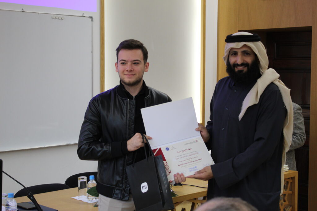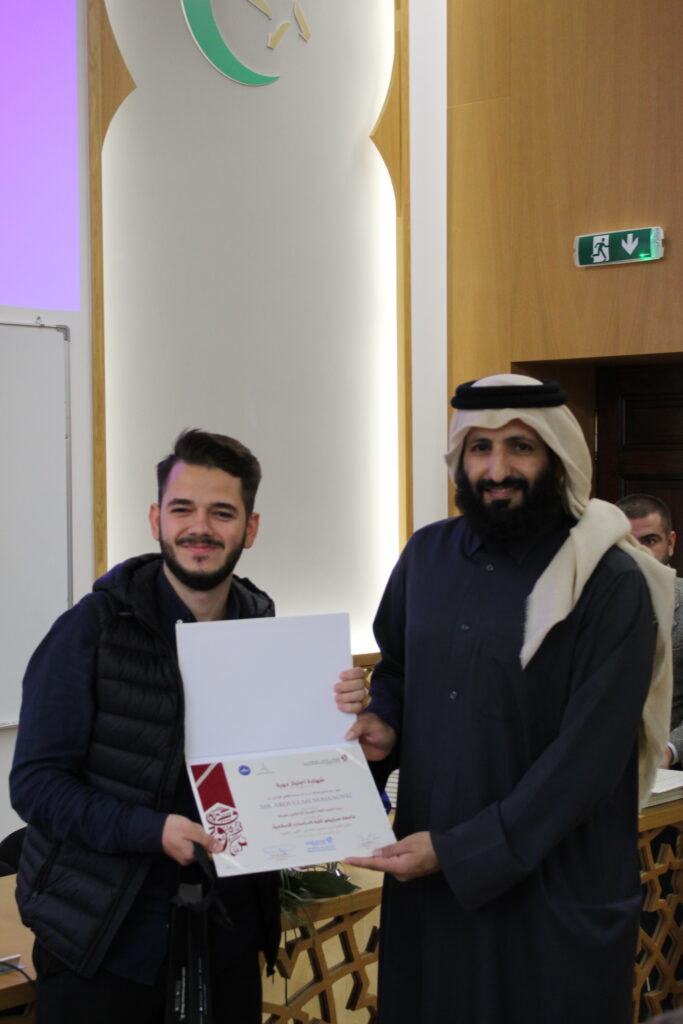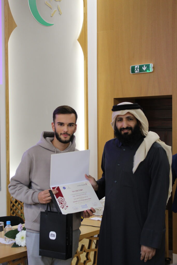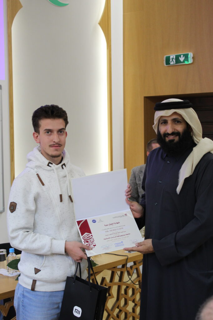 Po završetku Kursa, 6. oktobra 2025. godine, na Fakultetu islamskih nauka održana je i završna svečanost dodjele certifikata i prigodnih nagrada polaznicima Kursa. Uz 40 studenata – polaznika Kursa, svečanosti su prisustvovali i drugi studenti, nastavno osoblje, dekan Fakulteta prof. dr. Mustafa Hasani, predstavnik Uprave za obrazovanje i nauku Rijaseta Islamske zajednice u Bosni i Hercegovini te direktor Islamskog kulturnog centra „Šejh Abdullah bin Zajed Al Mahmoudi“ iz Katara, dr. Salih b. Ali al-Merri.